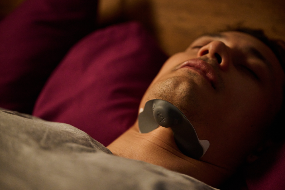 Zeus is an external electrical muscle stimulation device which is placed under the chin at night. It alleviates snoring by stimulating the hypoglossal nerve which controls the tongue and airway muscles.